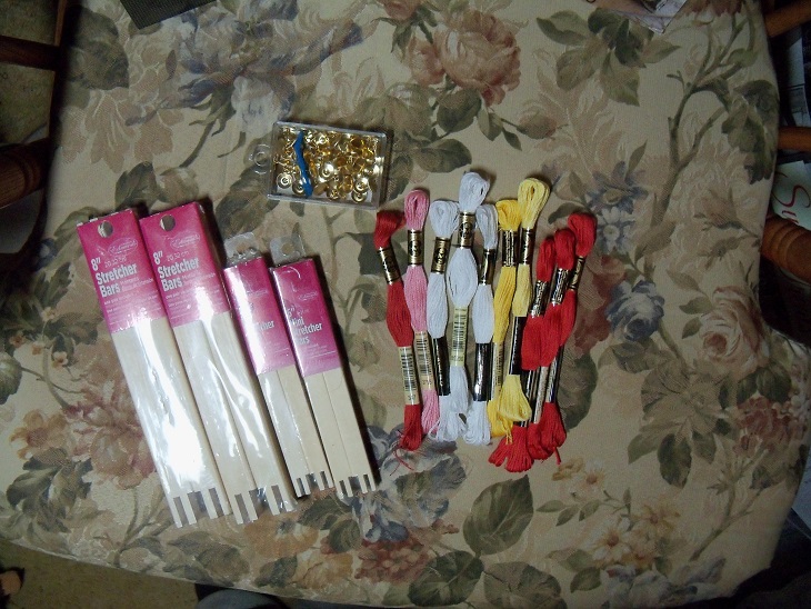 some stretcher bars and tacks for a couple of needlepoint ornaments...